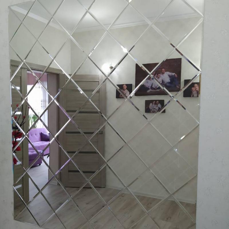 Использована зеркальная квадратная и треугольная плитка с фацетом.